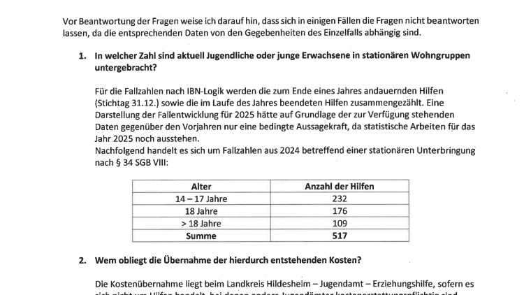361 - Antwort der Verwaltung Stationäre Jugendhilfe — Vermittlung Wohnungen Jugendliche / junge Volljährige 08.07.2025