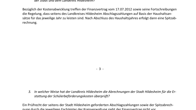 415 Antwort der Verwaltung Stadt Hi — Umbesetzung Reglungen Übernahme Kosten im Rahmen Schülerbeförderung 02.09.2025