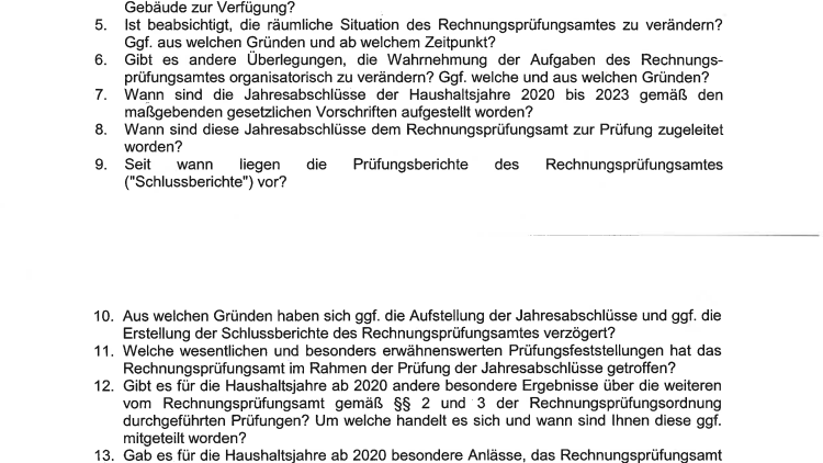 Notwendige Information Tätigkeit Rechnungsprüfungsamt