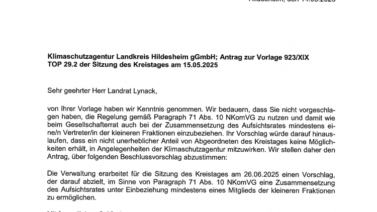 Klimaschutzagentur — Antrag zur Vorlage 923/XIX