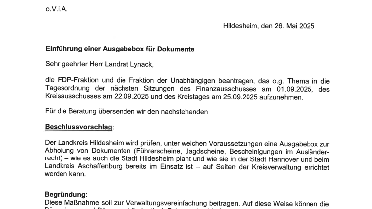 Einführung einer Ausgabebox für Dokumente
