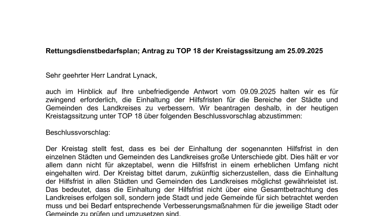 Rettungsdienstbedarfsplan; Antrag zu TOP 18 Kreistagssitzung 25.09.25